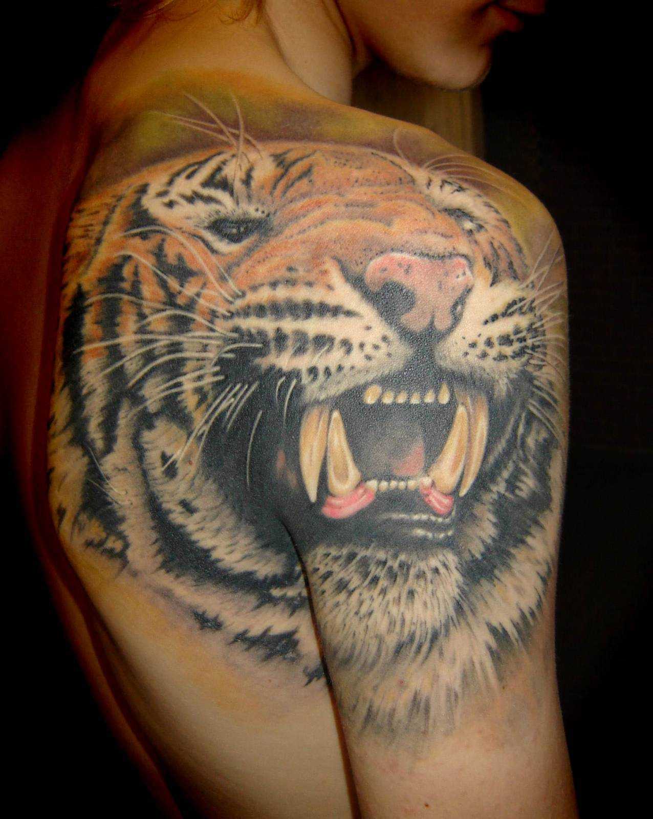 Оскал тигра в татуировках