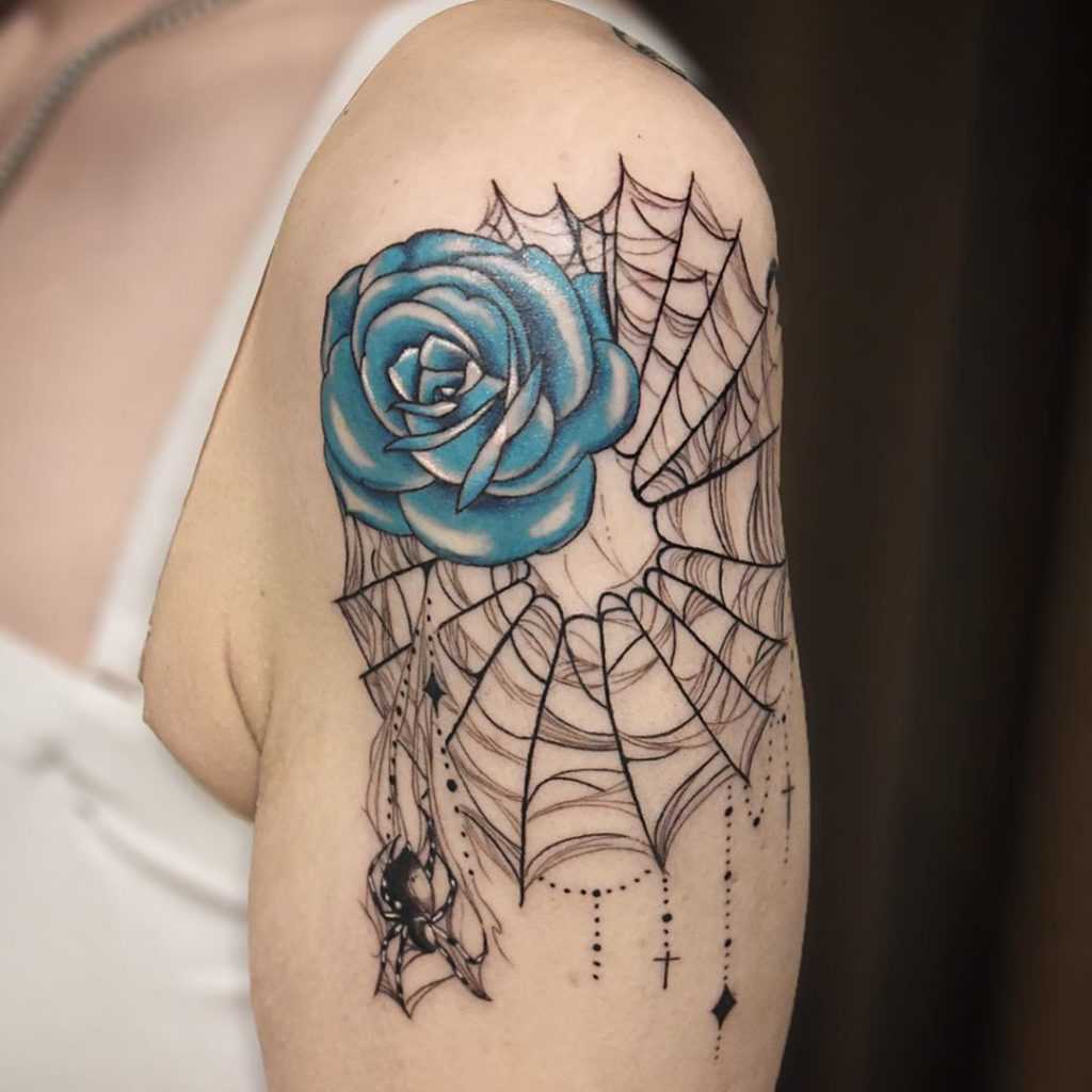 Паутина на плече встречается как индивидуальной татуировкой, так и частью рукава. В рукаве, покрывающем площадь руки от плеча до запястья, паутина станет воздушной связкой рисунка. На плече, как правило, бьют крупные изображения.