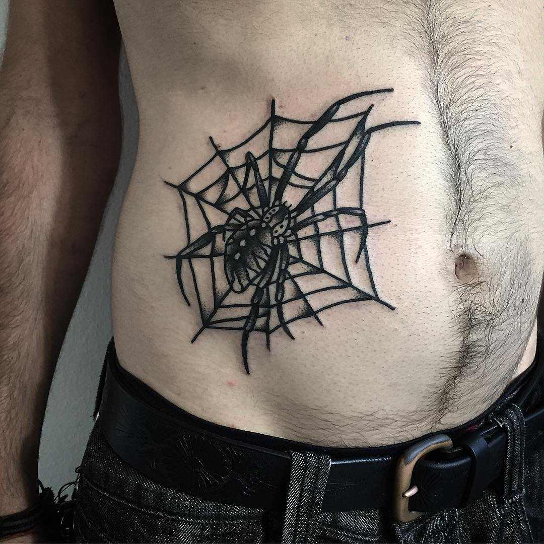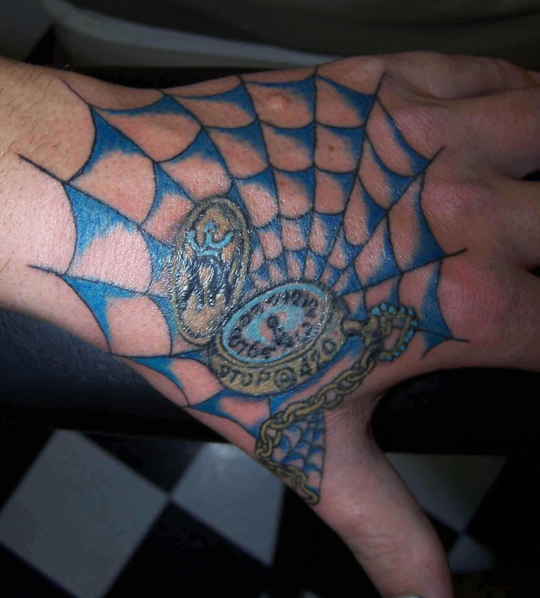 Паутина с пауком — это известная татуировка наркоманов, которые были на зоне. В английских колониях и тюрьмах такая татуировка означает, что ее носитель отрицает все законы, государства и колонии, то есть является символом непокорства и независимости. Паутина между пальцами, означает, что человек нуждается в наркотиках. А в некоторых случаях такую татуировку может сделать только человек, который убил представителя национального меньшинства в своей стране. В России татуировки с пауками и паутинами широко используются среди скинхедов и националистов.