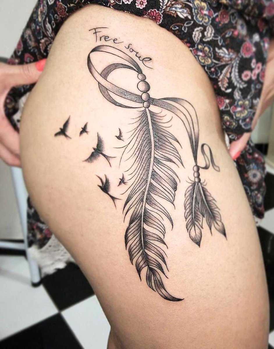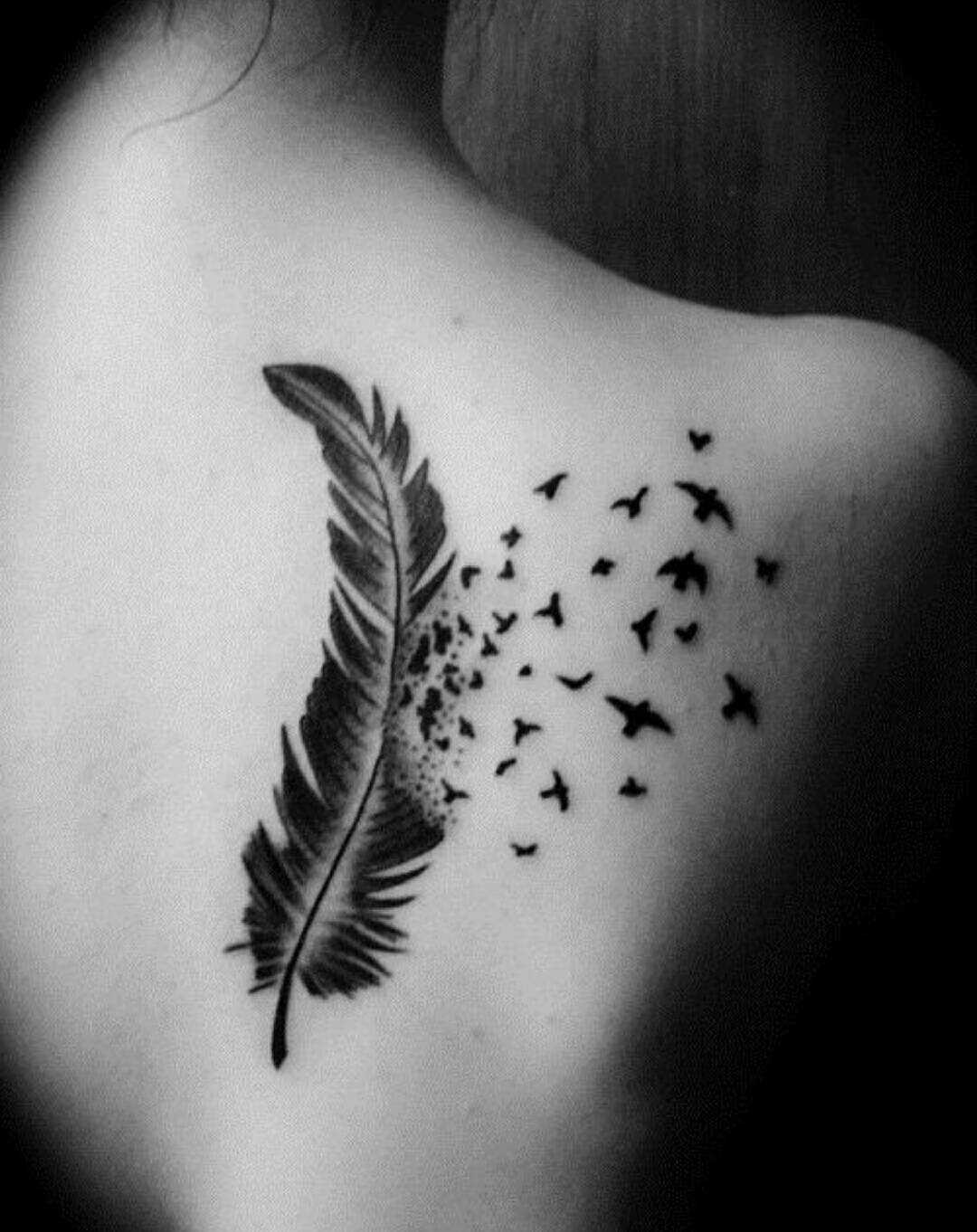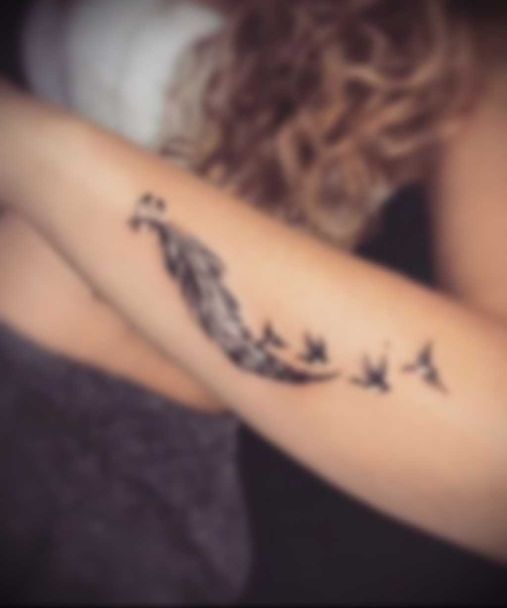 Татуировки в виде перьев с птицами. Смысл этого мотива — свобода, независимость и сила духа. Сегодня это один из самых популярных мотивов для девушек.