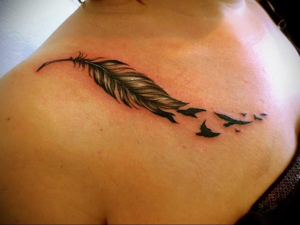 В большинстве случаев подобная татуировка олицетворяет собой легкость, духовность, доверие, волю и свободолюбие. Особое значение имеет тату, где изображено перо с птицами. Подобная картинка указывает на то, что ее обладатель всегда стремится быть независимым и свободным. Если перо разделено на две части – это символ потери или расставания.