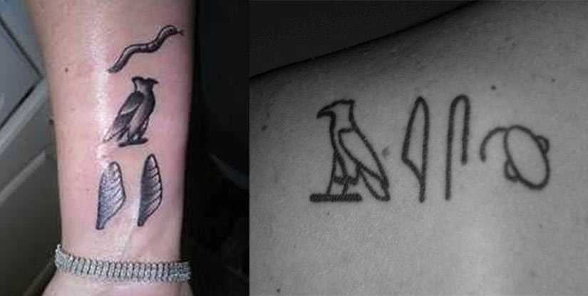 Эти знаки, украшающие древние храмы и гробницы, предельно просты в исполнении. Эскизы тату с иероглифическим письмом представляют собой как единичные, так и составные символы. Египетские татуировки с применением иероглифов и их значение очень легко найти на страницах различных интернет-ресурсов.
