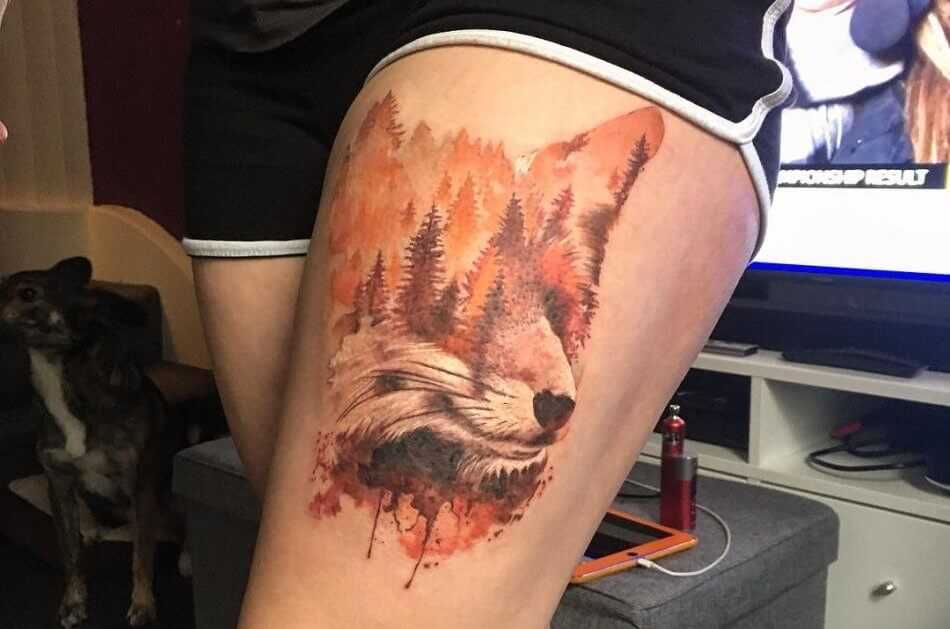 Интересно смотрятся татуировки с пятнистыми или бурыми лисами. Переплетение цветов символизирует нестандартность мышления, умение без потерь выходить из любых жизненных ситуаций.
