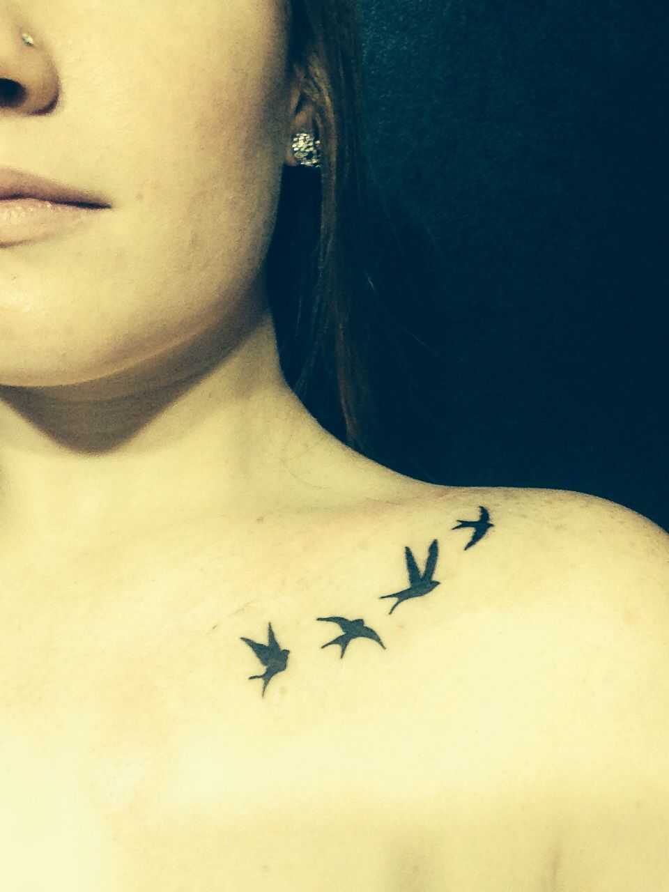 Расположенная на ключицах, ласточка станет символом приверженности к семейным традициям, к домашнему уюту, верности в любви.