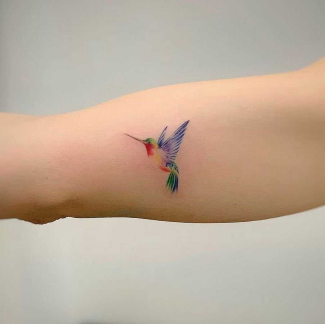 Лучшим из возможных вариантов для любой зоны на теле будет наколка колибри, из-за ее небольшого размера. Она укажет на жизнерадостность, смелость в самовыражении. Колибри подойдет оптимисткам, предпочитающим видеть все в ярких красках.