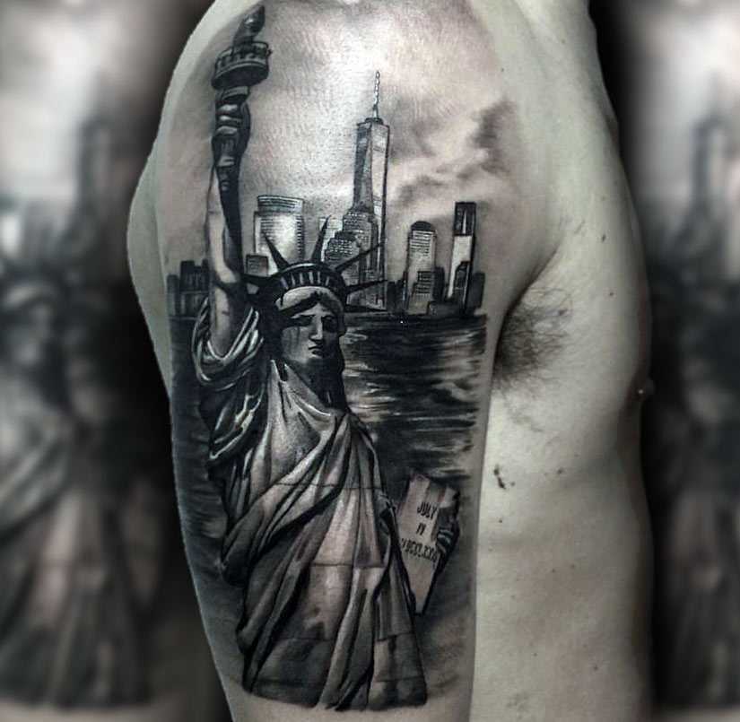 У многих людей в мире есть тату статуя свободы. При этом, далеко не все они имеют хоть какое-то отношение к США. Само изваяние возведено в Нью-Йорке, на о. Свободы. Это всемирный символ идеалов демократического общества, победивших в стране. В мире есть немало людей, разделяющих эти идеи и ценности. Они приходят к тату мастерам, чтобы заказать себе такой эскиз.на