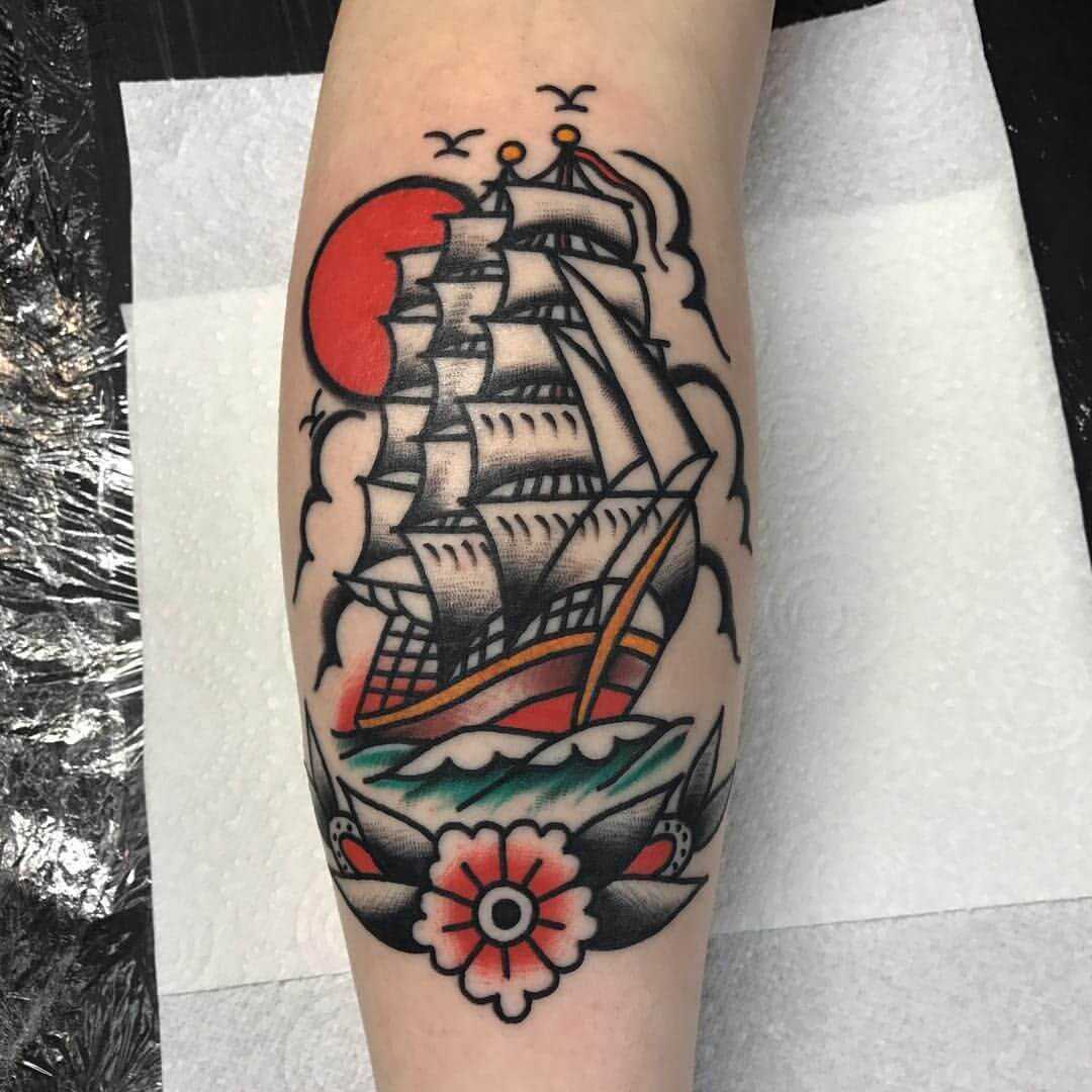 Тату с кораблем символизирует трудный жизненный путь. Часто такие тату наносили моряки, вернувшиеся после шторма или нападения на их судно.