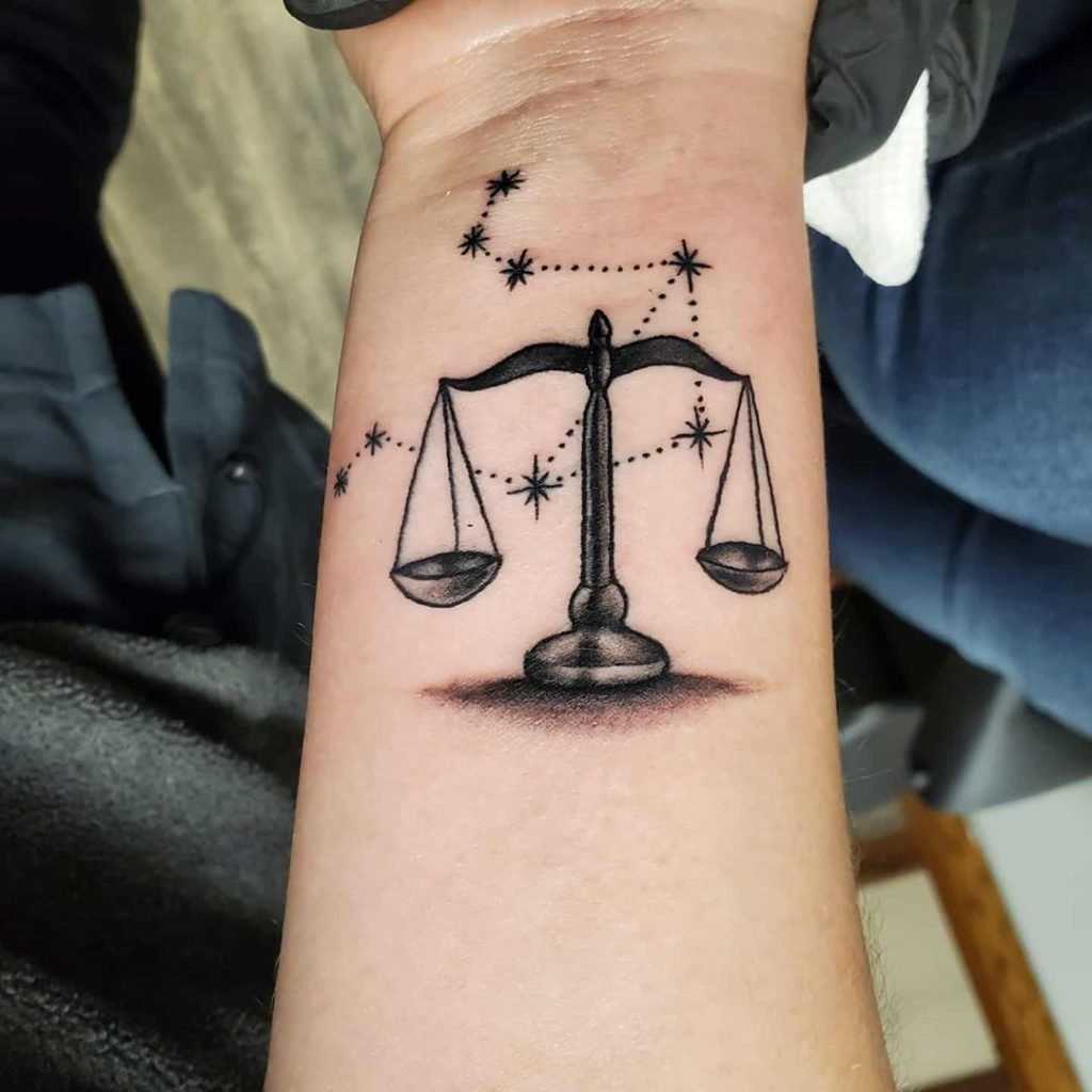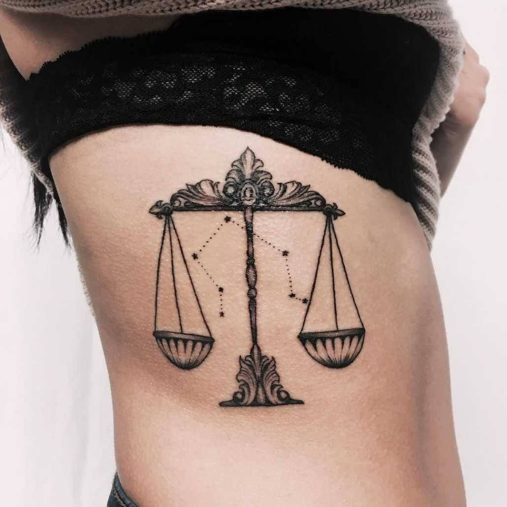 Тату созвездие весов напоминает смертным землянам том, что за все проступки придётся нести ответ.
