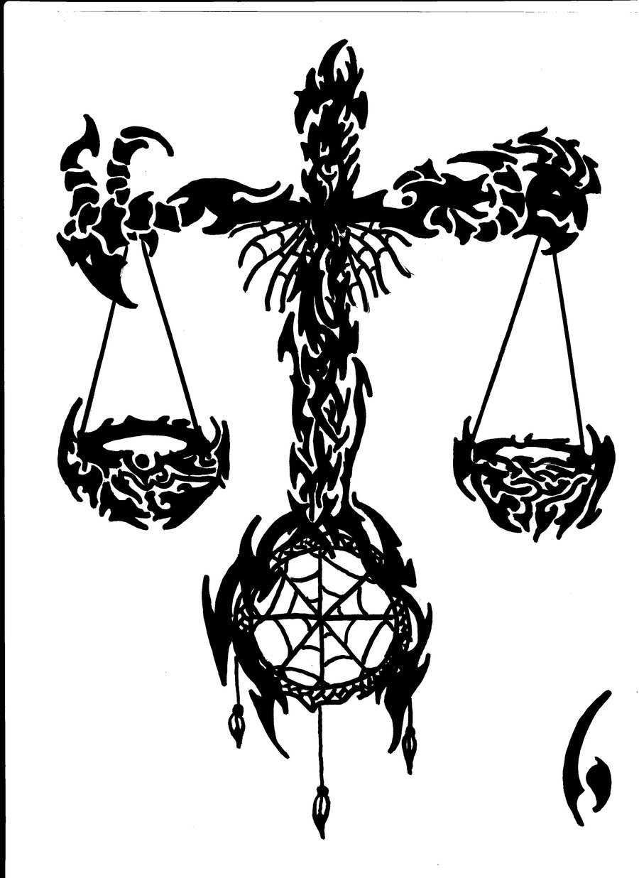 Эскизы тату весов интерпретируются в зависимости от сюжетной линии: