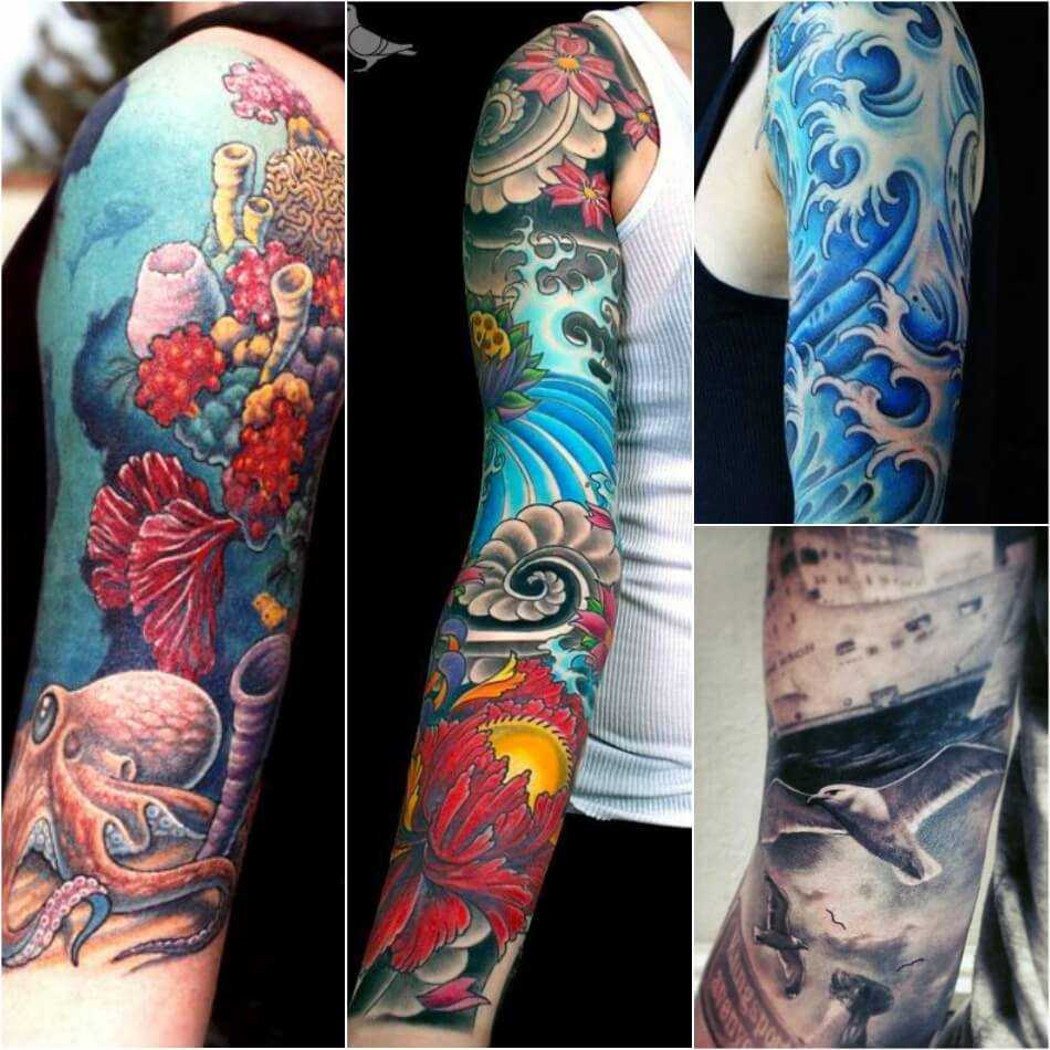 Рукава с морем это изображение бушующего моря или яркого подводного мира. Море хранит в себе множество секретов и богатств. Подводный мир моря полон ярких красок, красивых обитателей, необычных рельефов. Рукав в стиле реализм на морскую тему никого не оставит равнодушным к вашей татуировке.