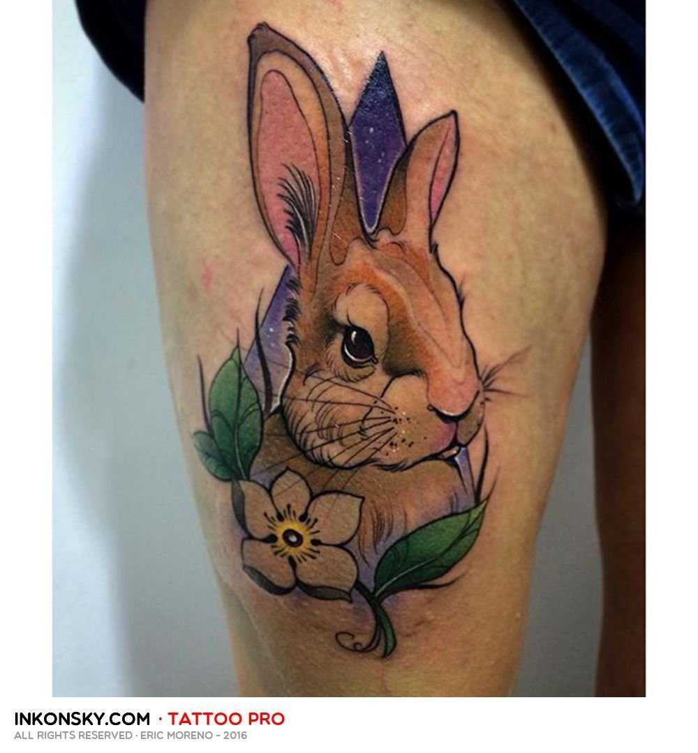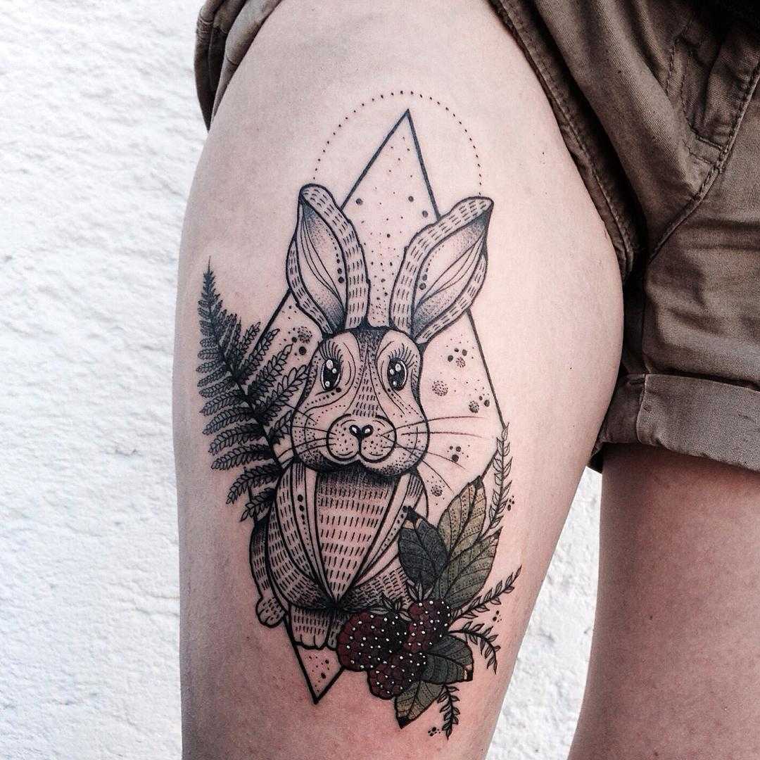 А ниже представлены фото татуировок с изображением зайца или кролика от разных мастеров.