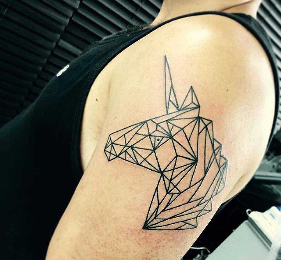 Животный рисунок в геометрической татуировке создается с помощью геометрических фигур, таких как: квадрат, овал, круг, треугольник, линии. В тату все эти перечисленные фигуры сочетаются в один большой узор. Считается, что такие тату наиболее интересные. Простые прорисованные тату допускают некие огрехи, в геометрии же это строго запрещено. Один неточный штрих, и рисунок может быть испорчен. В связи с этим, есть правило, что нанесение такого тату вы должны доверить хорошему мастеру, а также во время нанесения тату желательно не двигаться.