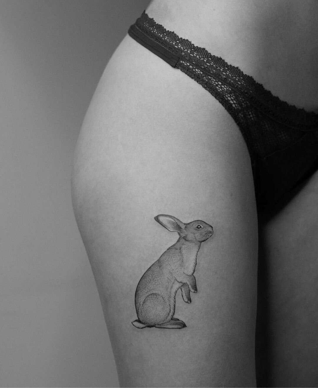 - Бедро: идеальное место для татуировки зайца, особенно если вы хотите иметь большую и детальную картину. Бедро предлагает достаточно пространства для выражения творчества татуировщика.