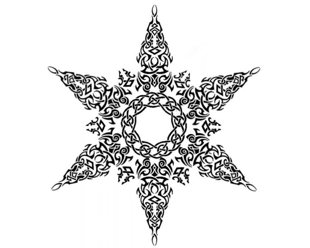 Звезда состоящая из 9 лучей — символ стабильности. Происходит от скандинавской мифологии. Такая звезда означала девять миров. В Ирландии подобного рода татуировка представляет символ крепкого здоровья.