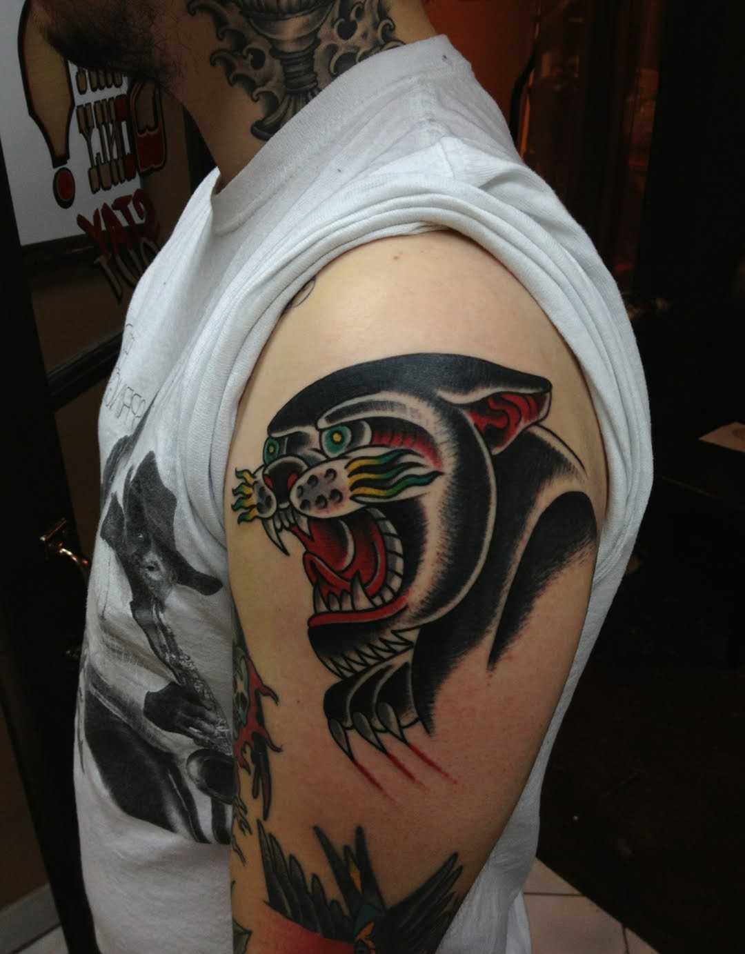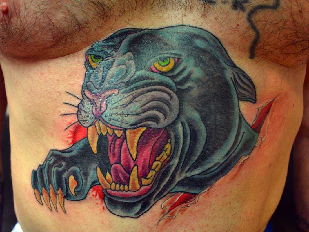 Если тату с изображением пантеры нанесено на самые рельефные участки тела, то это только подчеркивает силу и выражение достоинств у мужчины. На выбор такой татуировки часто влияет фактор одиночества и независимость мужского пола, как и самой пантеры. Нанесение тату в виде пантеры скрывает в себе большой смысл