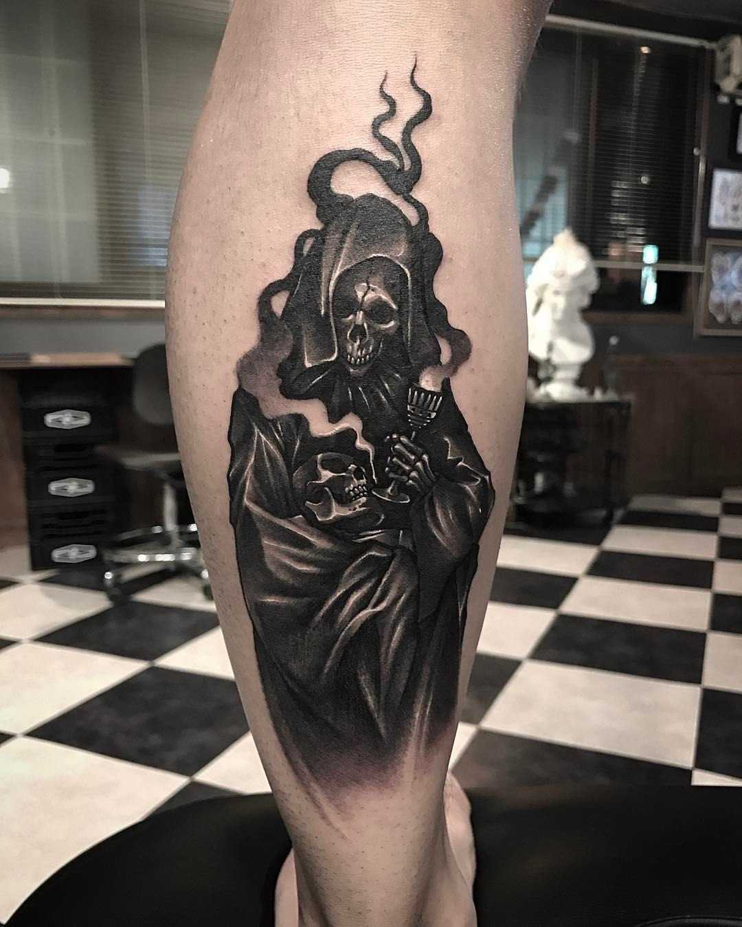 А ниже представлены фото татуировок с изображением смерти с косой от разных мастеров.