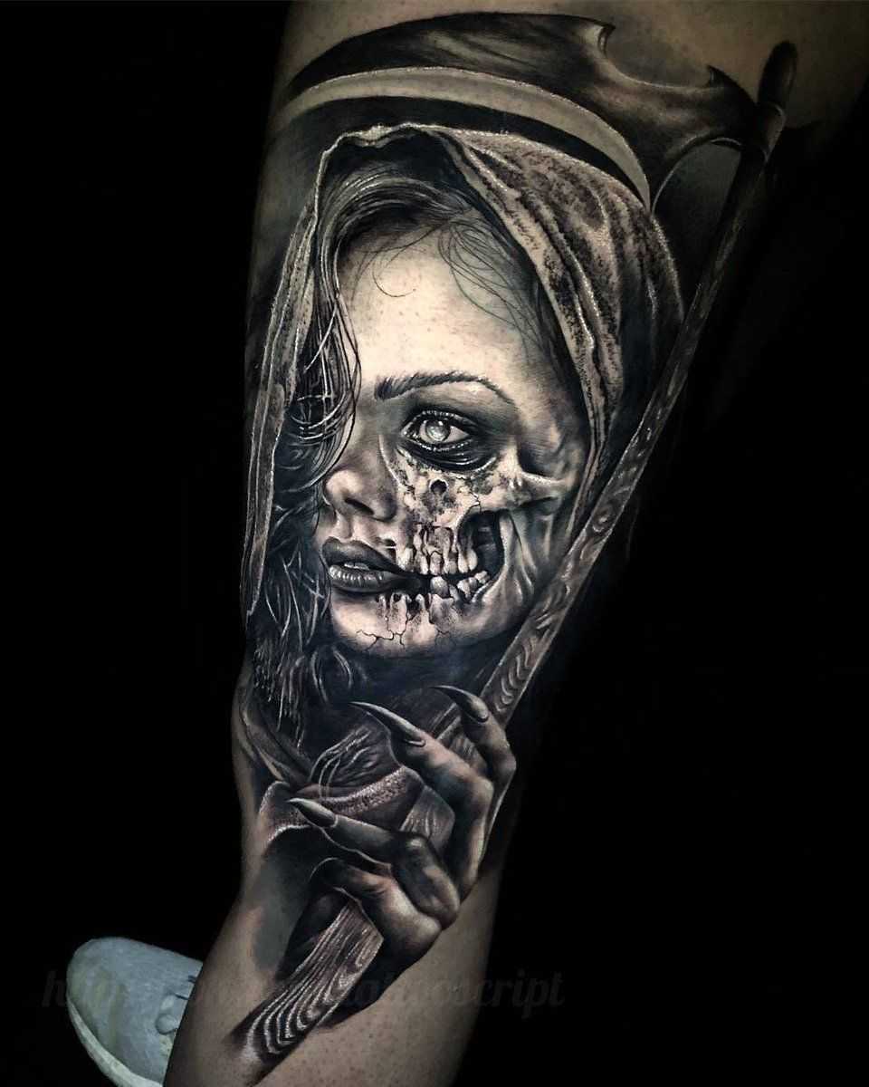 Значение татуировки смерть для парней и девушек (фото и эскизы)