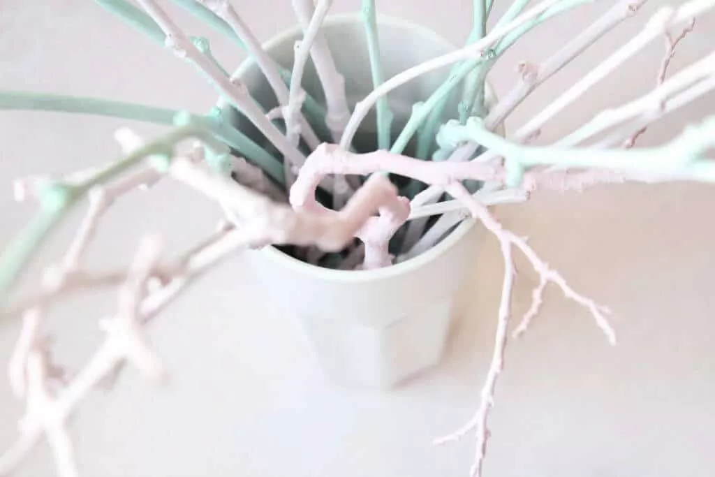 Подготовленные таким образом ветки можно красить. Для этого подберите акриловую краску любого цвета. И не забывайте соблюдать основные правила: