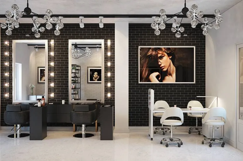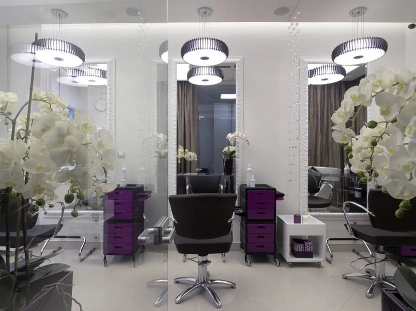 - Оформление зала может выполняться как в виде открытого пространства с мобильными перегородками или шторами, так и отдельных кабинетов с дверьми. Независимо от выбранного способа придерживайтесь концепции салона, функциональных задач и требований СанПиН;