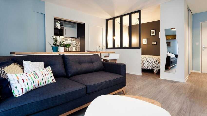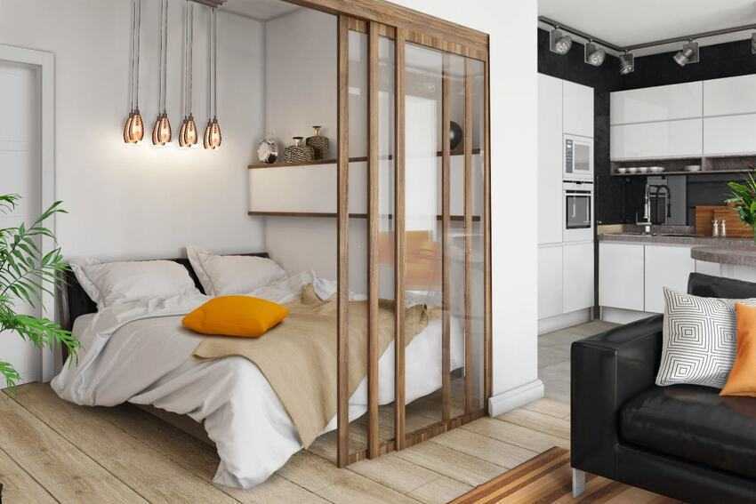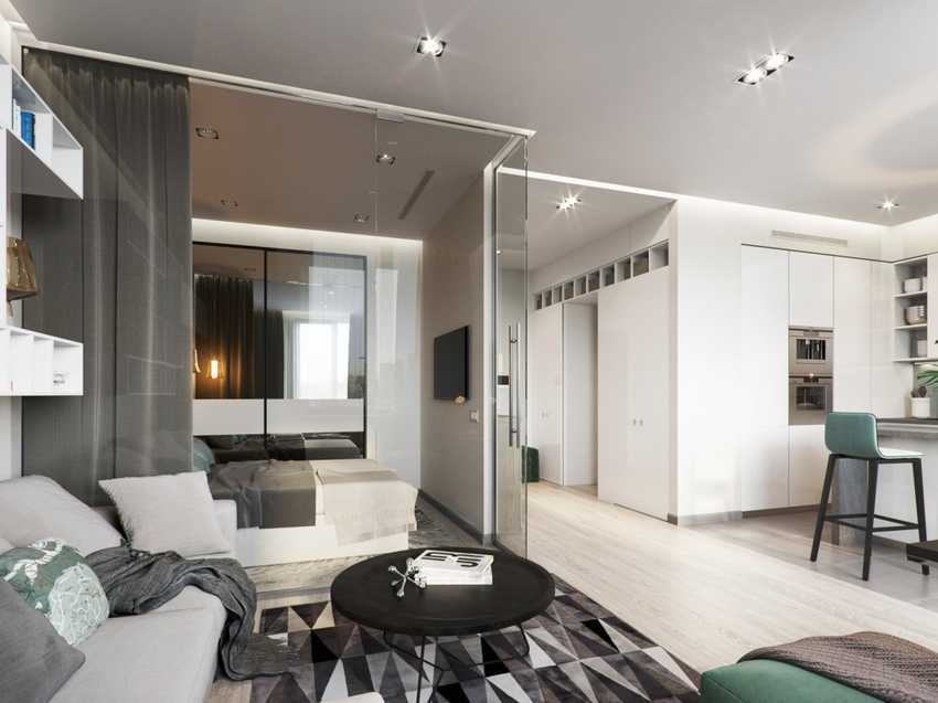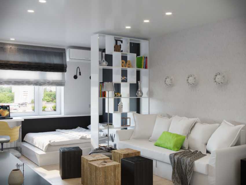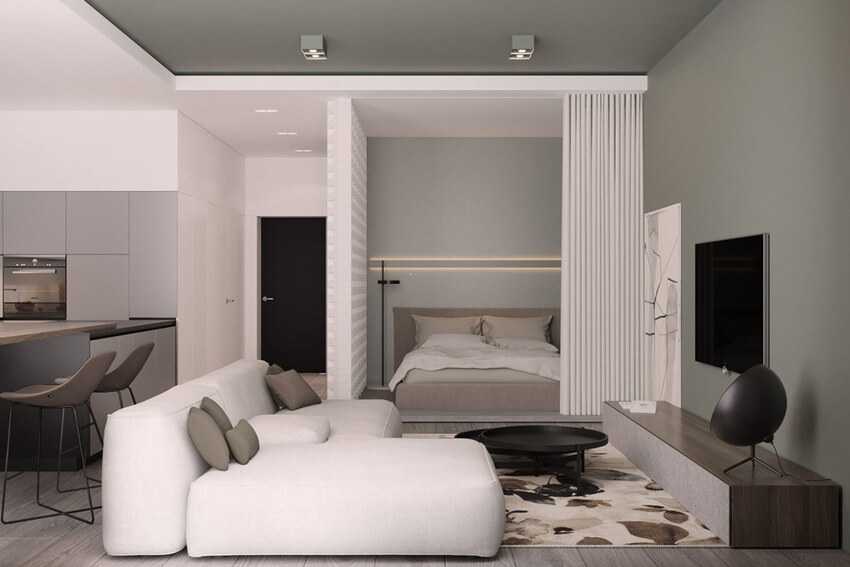 Это будет способствовать разделению пространства, которое станет причиной визуального уменьшения площади помещения.