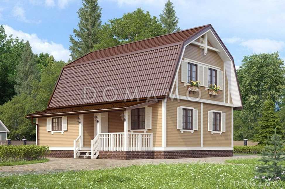 Более усложненный вариант двускатной. Такие крыши частных домов идеально подходят для постройки мансард. Конструкция состоит из двух скатов, имеющих излом. Такая форма позволяет устанавливать окна на фронтонах и максимально использовать чердачную площадь. Она более устойчива к ветру, благодаря своей обтекаемости.