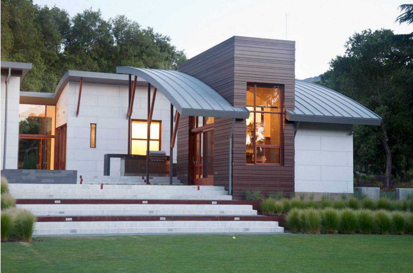 - Оригинальные визуальные характеристики. Крыши арочного типа встречаются нечасто, поэтому жилой дом с такой конструкцией автоматически становится оригинальным и выделяющимся на фоне более традиционных скатных кровель.