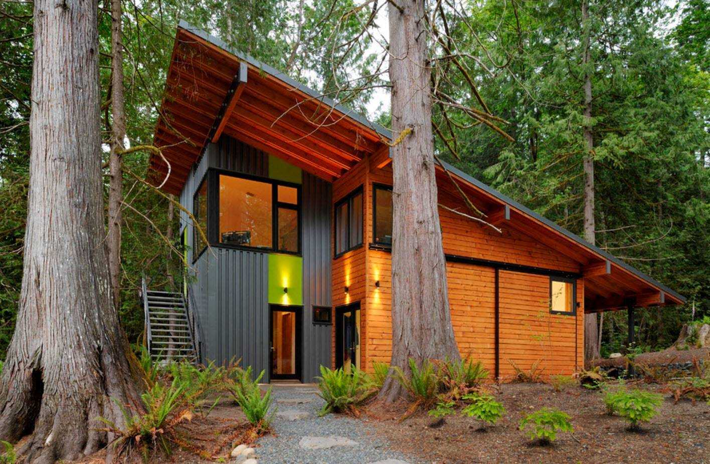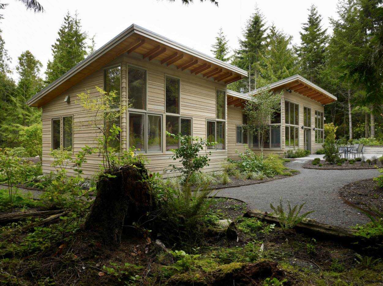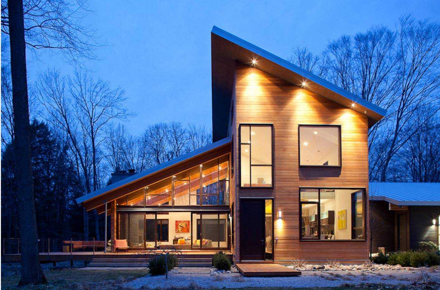 Двускатная крыша – такая же недорогая конструкция, которую нередко применяют для домов самых многообразных форм. Чудесно подходит для снежных местностей.