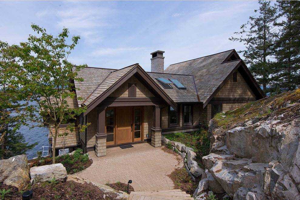 Этот вид крыши предполагает расположение конька не в центре, а со смещением к одному из краев, как это показано на фото. Деталь является основным акцентом во внешнем виде дома, что делает его более эксцентричным и интересным.
