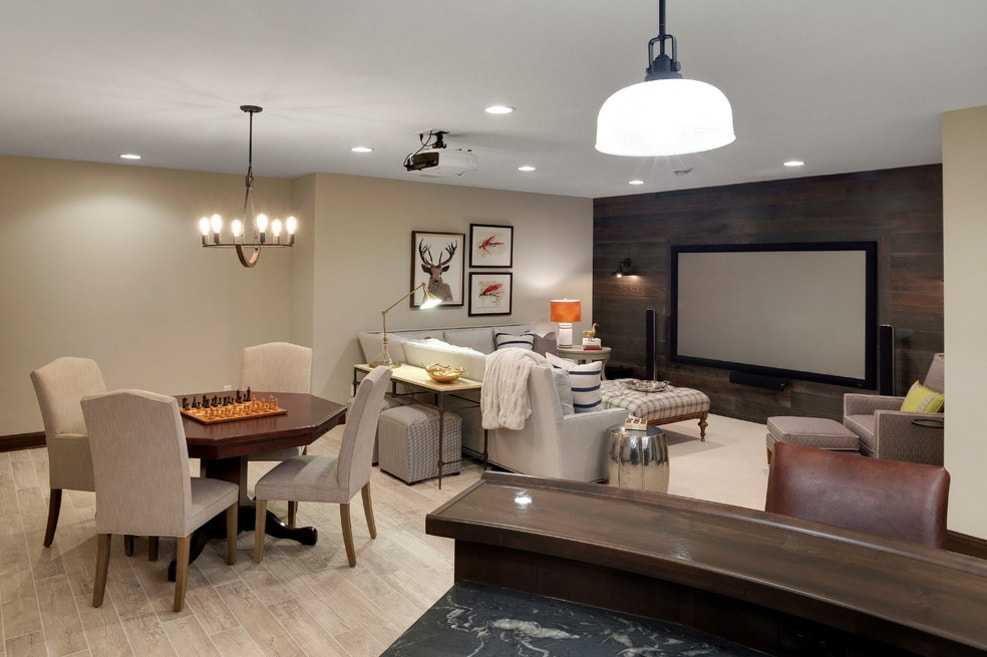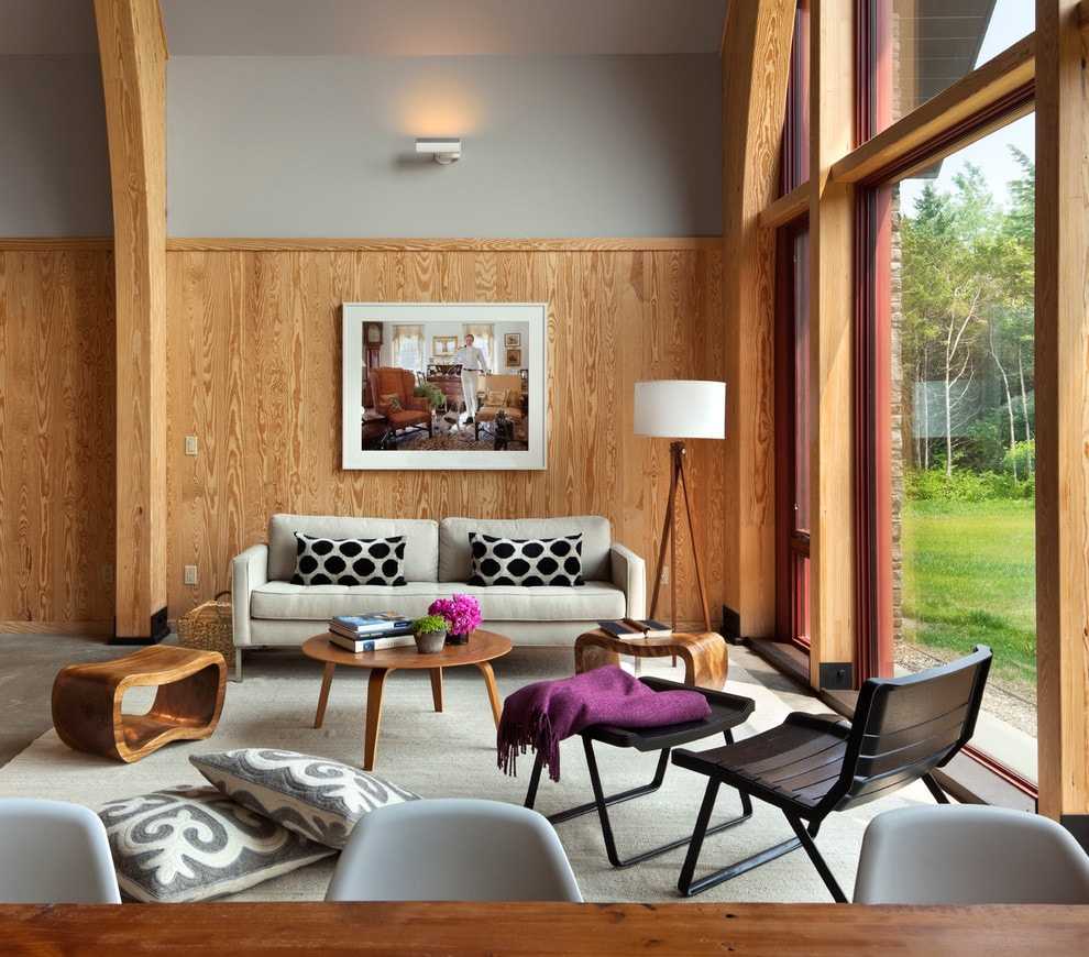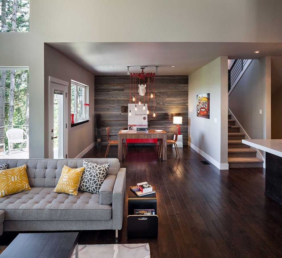 Если приложить фантазию, можно использовать несколько различных типов панелей, как по цвету, так и по фактуре. Это сделает дизайн более сложным и интересным. Как правило, ламинат используется для зоны телевизора или основного дивана в гостиной.