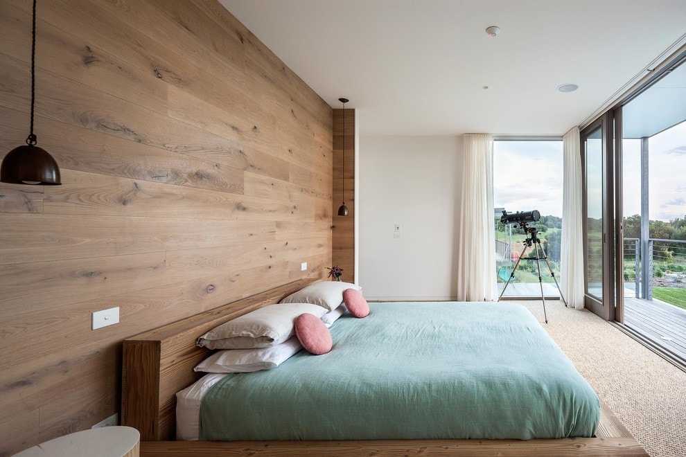 Стекло или зеркала не должны располагаться рядом или перед стеной pamellato, также не рекомендуется размещать этот вид отделки перед панорамным окном. Отражения в стекле или глянцевых поверхностях уменьшат красоту акцентов в интерьере. Потолок в спальне с панорамными окнами также лучше оформить матовым полотном.