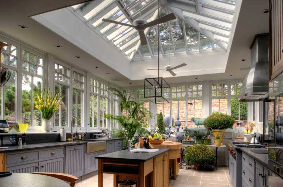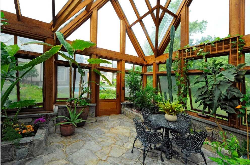 Данный вид зимнего сада обычно проектируют еще на этапе строительства. Это обусловлено тем, что необходимо заранее обеспечить пространство отоплением и хорошей гидроизоляцией