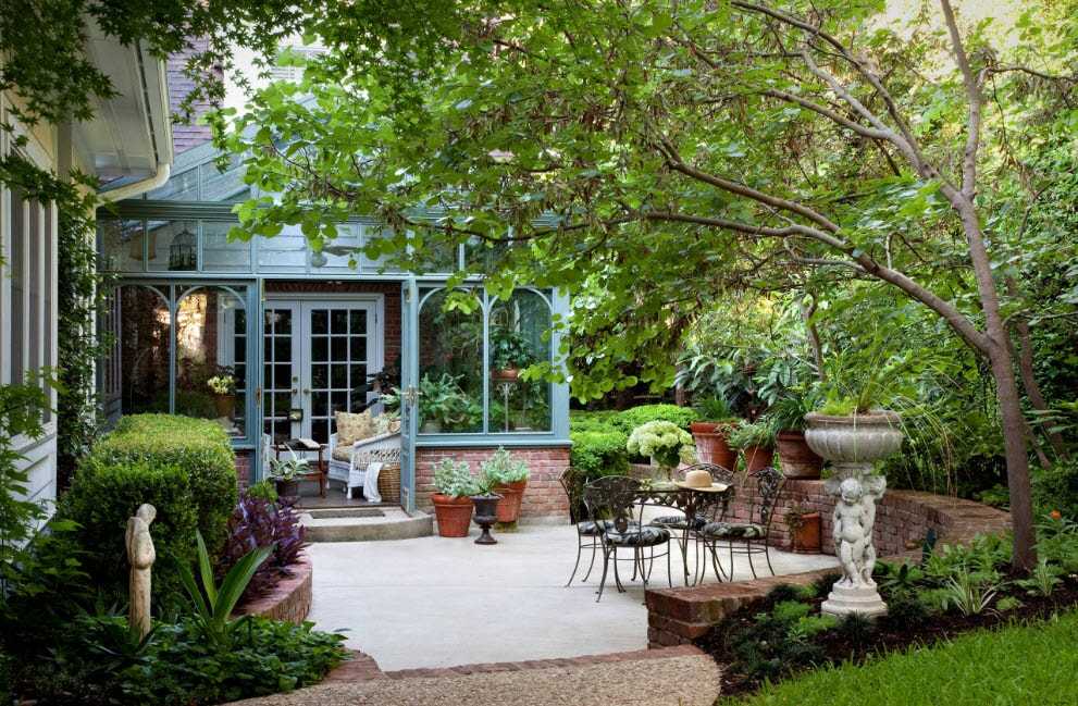Что касается внешнего вида, то жилой сад представляет собой пространство не только для растений, но и для жителей дома. Чаще всего – это своеобразная зона отдыха. Но не редко бывают варианты совмещения с гостиной или столовой.