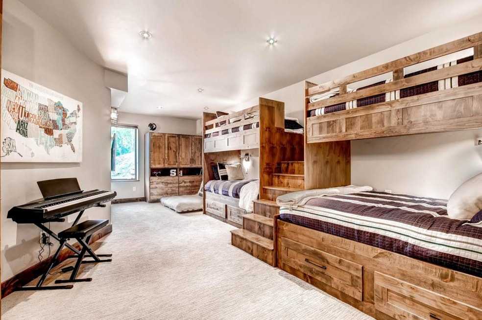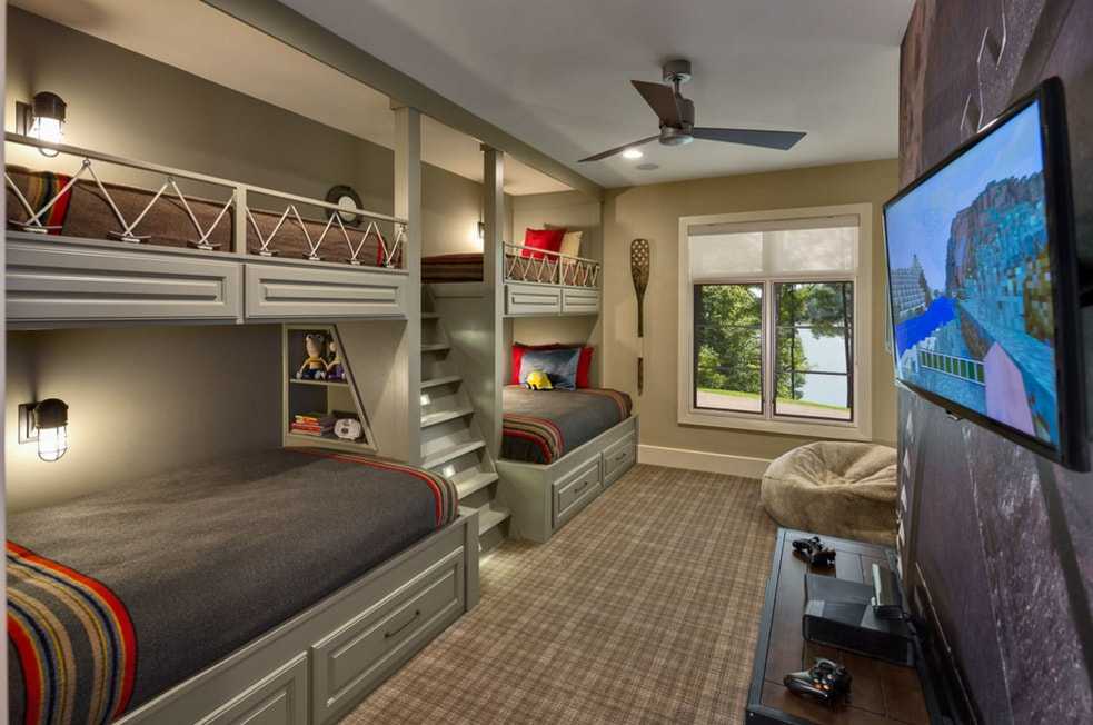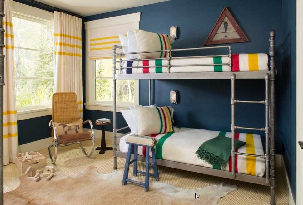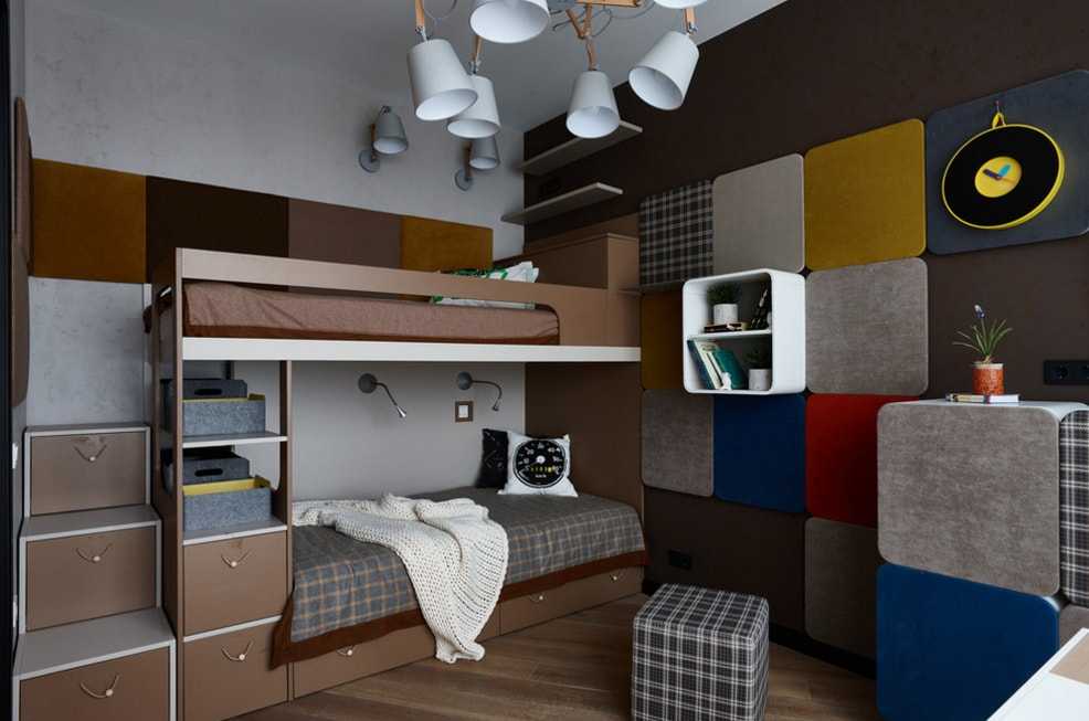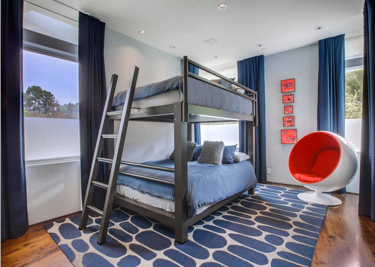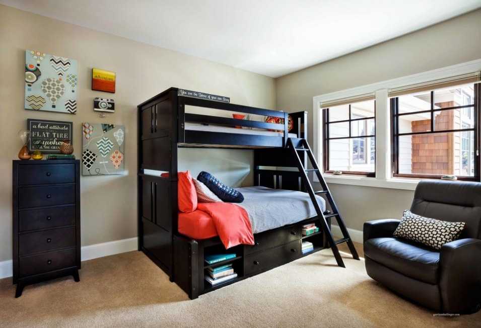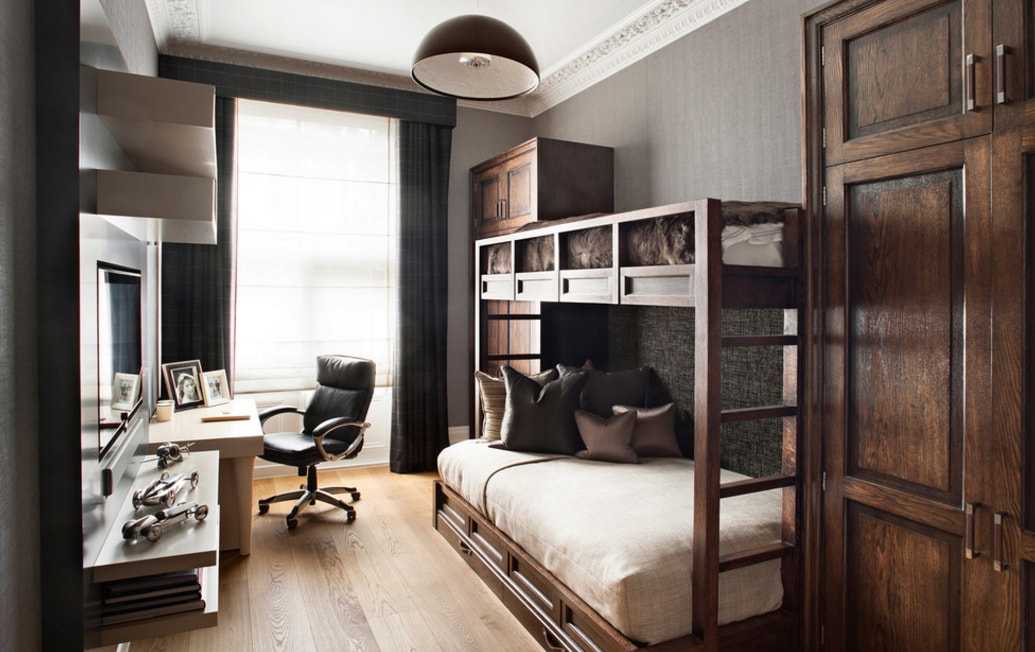Сдержанный дизайн комнаты и кроватей отлично подойдет для сплоченных мальчишек в подростковом возрасте.