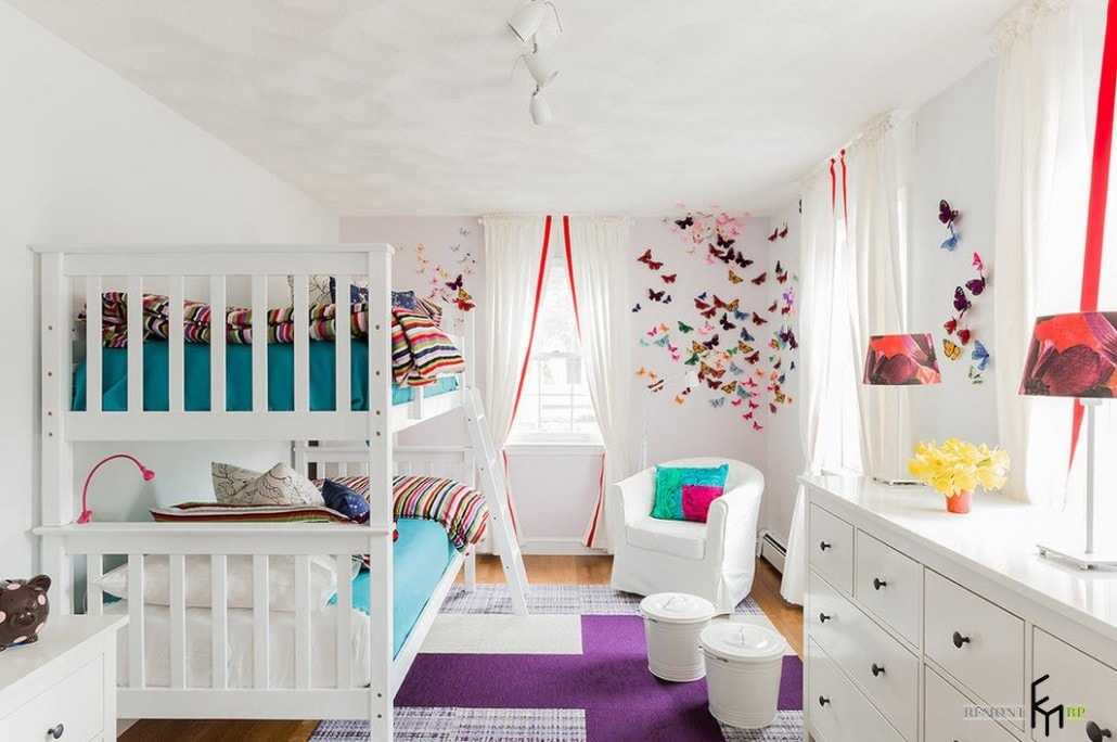 Небольшие шторки в качестве декора двухъярусной кровати смотрятся довольно интересно. К тому же, за счет них каждый ребенок сможет уединиться в своем пространстве, чтобы просто помечтать или почитать книгу.