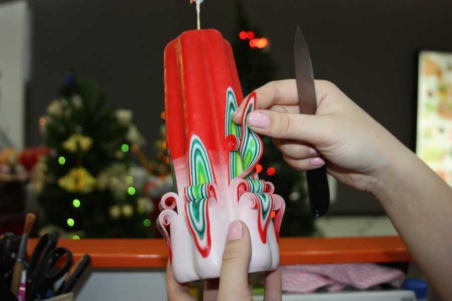 Если у вас нет красителя, но хочется создать что-то яркое и запоминающееся, — не расстраивайтесь. Самую простую свечу, изготовленную из огарков, можно превратить в произведение искусства. Для этого нужно набраться немного терпения и декорировать изделие по своему вкусу.