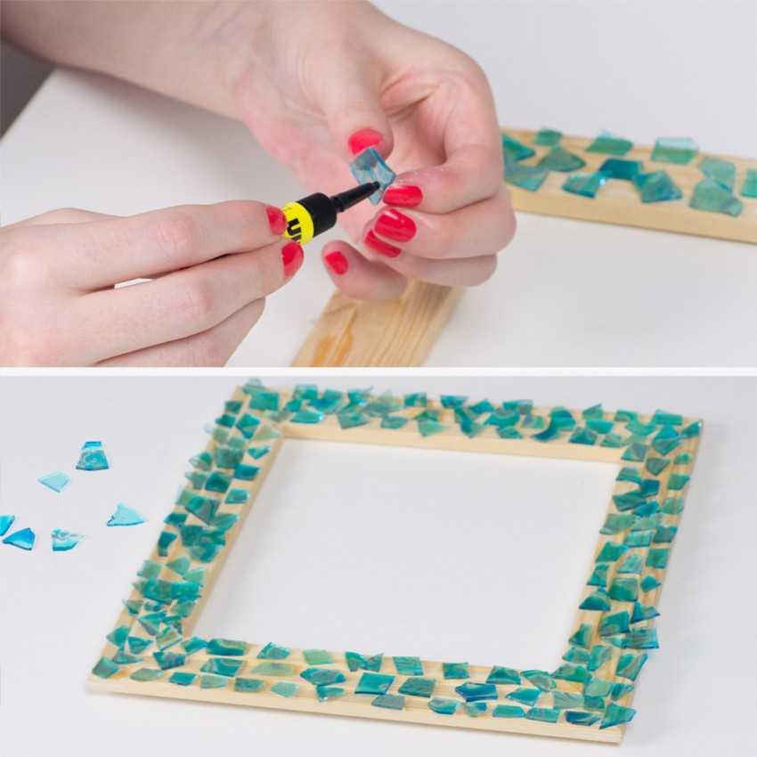 Оформить обрамление можно всем, что попадется под руки. В ход идут палочки от мороженого, пластиковые ложки, веревки, другая мелочевка