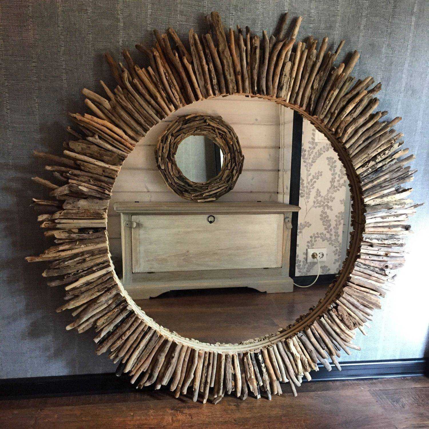 Потрясающе красиво смотрятся зеркала с рамками из более крупных веток или даже из кусочков коры.