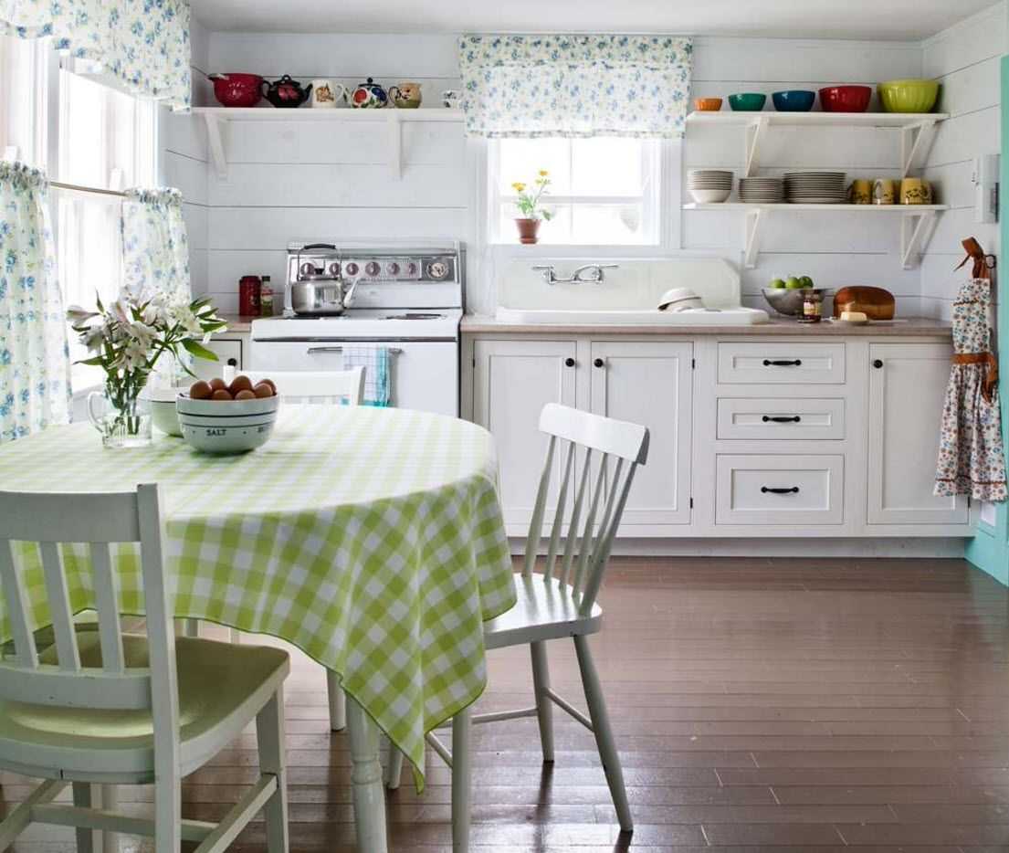 Если вы оформляете кухню в стиле кантри или Прованс, то именно с помощью текстиля во многом можно передать основные черты стилистик. Ткань в мелкий или среднего размера цветочек однозначно укажет на стилевую принадлежность интерьера – именно такие расцветки позволяют привнести в дизайн кухонного пространства уютную и расслабляющую атмосферу.