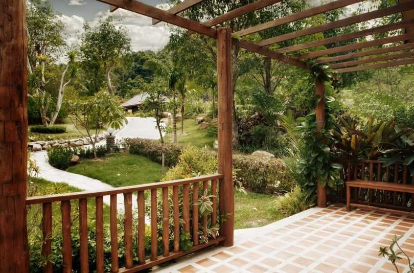 Большинство дачных домов становятся обитаемыми исключительно с началом теплых дней. Если это как раз ваш случай, то оптимальным решением станет веранда открытого типа. Во-первых, нецелесообразно тратить средства на остекление или возведение глухих кирпичных стен, если вы просто не будете этим пользоваться. Во-вторых, если речь идет о самостоятельной пристройке веранды к дому, то открытое сооружение возводится намного быстрее и требует меньших затрат на стройматериалы.