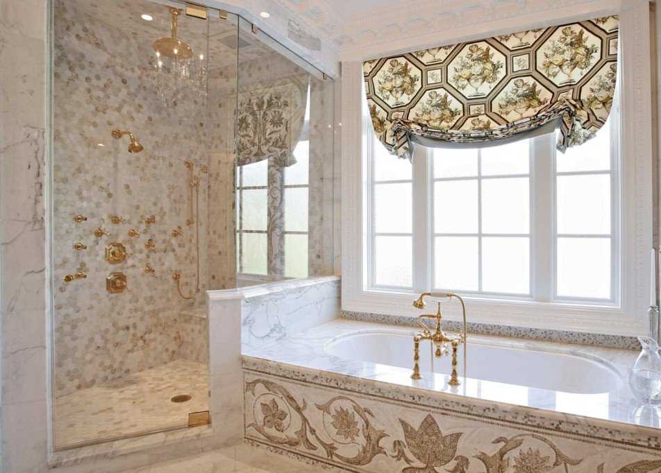 Мрамор остаётся достаточно благородным материалом в отделке ванной комнаты. Придаёт ей достаточную солидность. Также этот материал весьма долговечен и может прослужить в неизменном виде несколько десятков лет.
