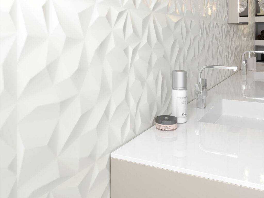 Среди хитов для ванных комнат 2021 года есть и 3D-плитка, то есть трехмерная плитка с видимой и ощутимой текстурой. Особой популярностью у дизайнеров пользуются модели из 3D плитки небольших размеров и замысловатой формы, стилизованные под восточные орнаменты.