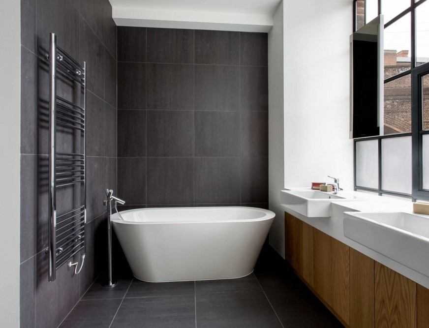 В 2018 году также стоит обратить внимание на стиль лофт. Но он применим исключительно в больших, просторных ванных комнатах
