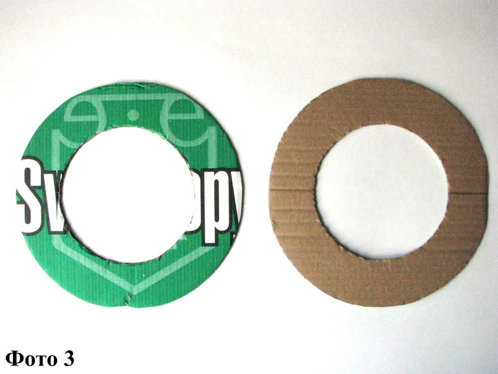 На листе картона рисуем два круга для создания заготовки. Если же картон не слишком плотный, то рекомендуем вырезать сразу две детали.