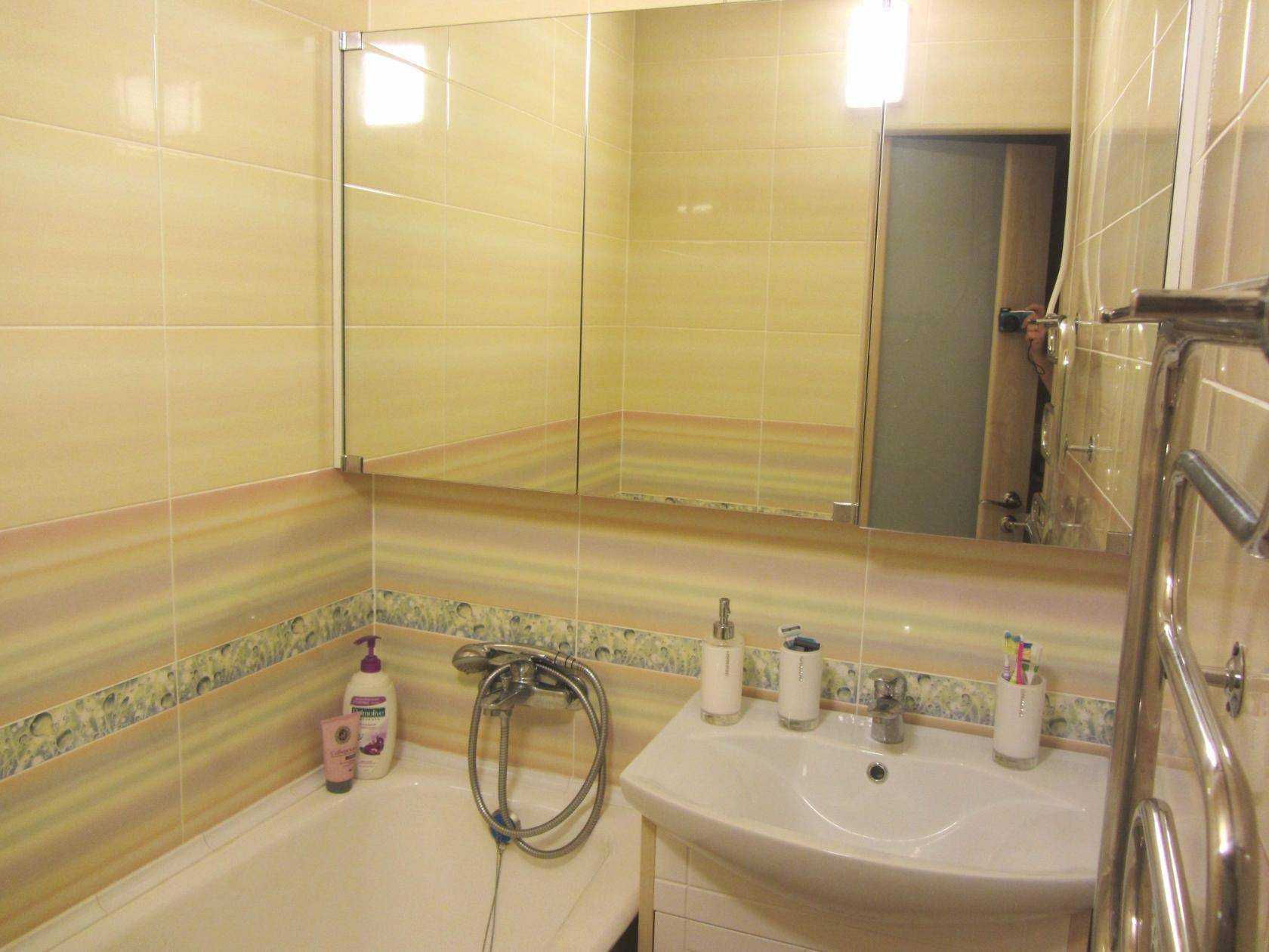 Фото 6. В уютной небольшой ванной комнате нашлось место для каждого предмета интерьера. Полукруглый душевой уголок без поддона (800×800×1950), расположенный в углу помещения, привлекает взгляд серебристыми контурами обрамления, служащего не только креплением его фасада, но и элементом украшения комнаты.