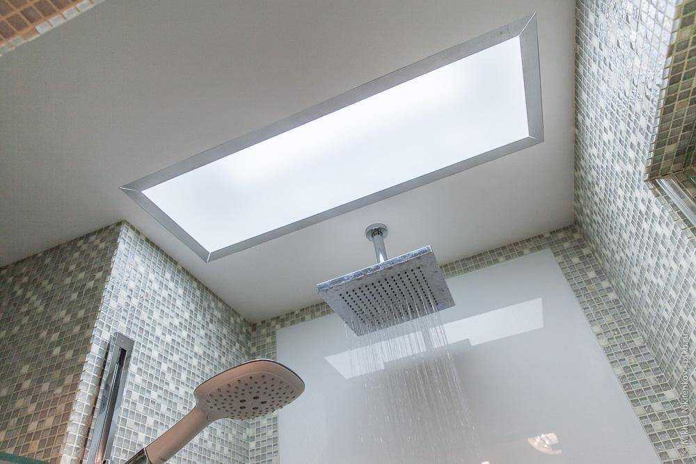 Для отделки потолка в душевой комнате подходят несколько материалов.