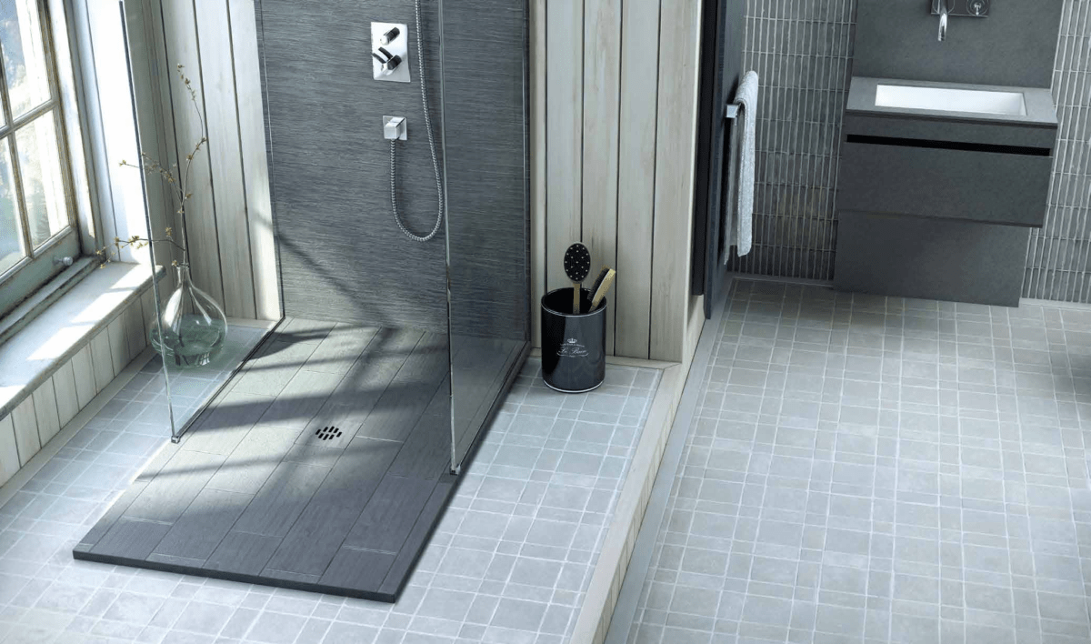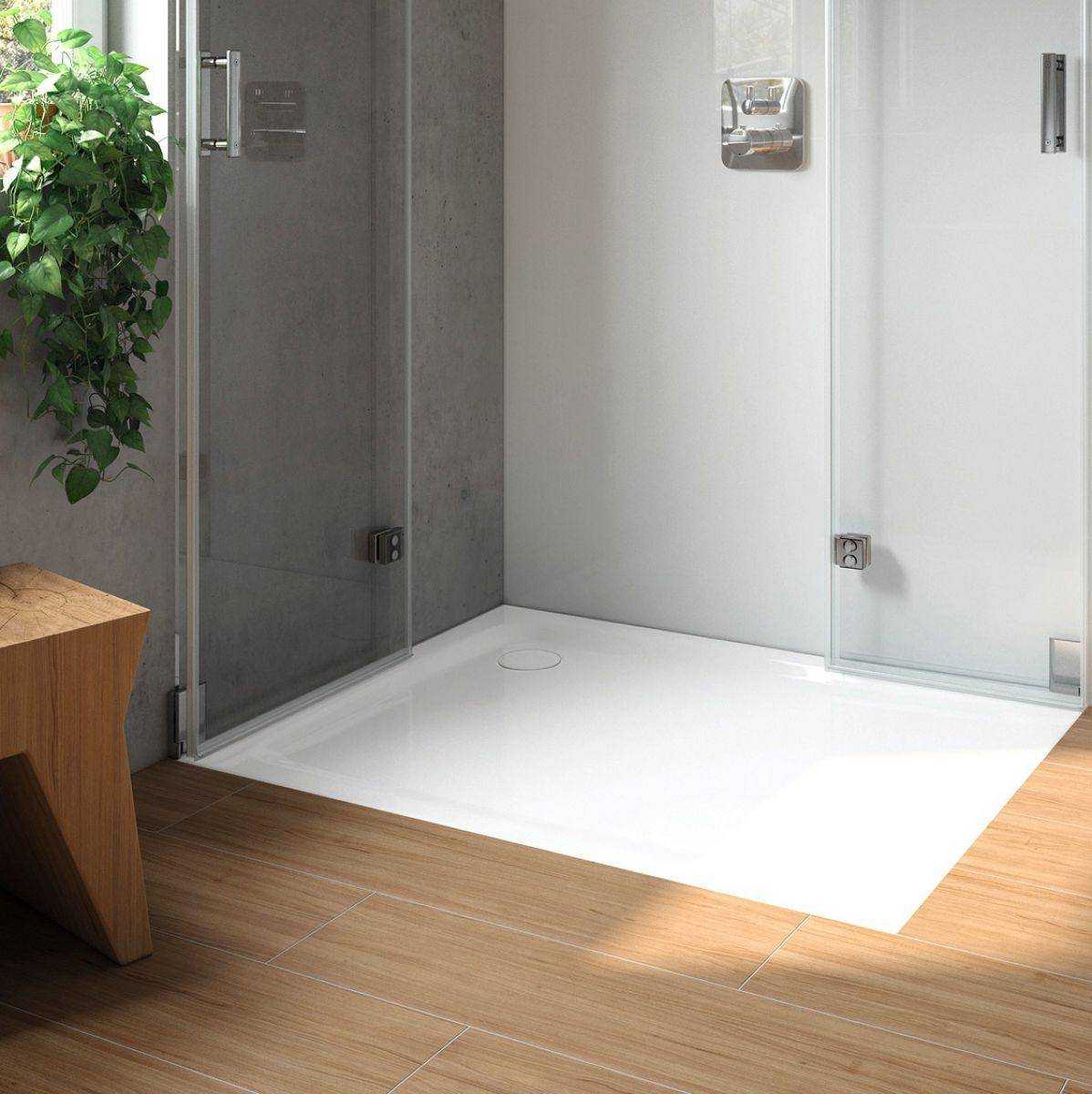 Обычно душевая кабина из плитки делается с поддоном. Для этого чтобы спрятать дренажные системы, поднимается уровень пола. Есть разные варианты и типы поддонов. Лучший непромокаемый поддон – готовый вариант, который можно приобрести в магазине. Речь идет об акриловом или эмалированном основании для будущего душа.
