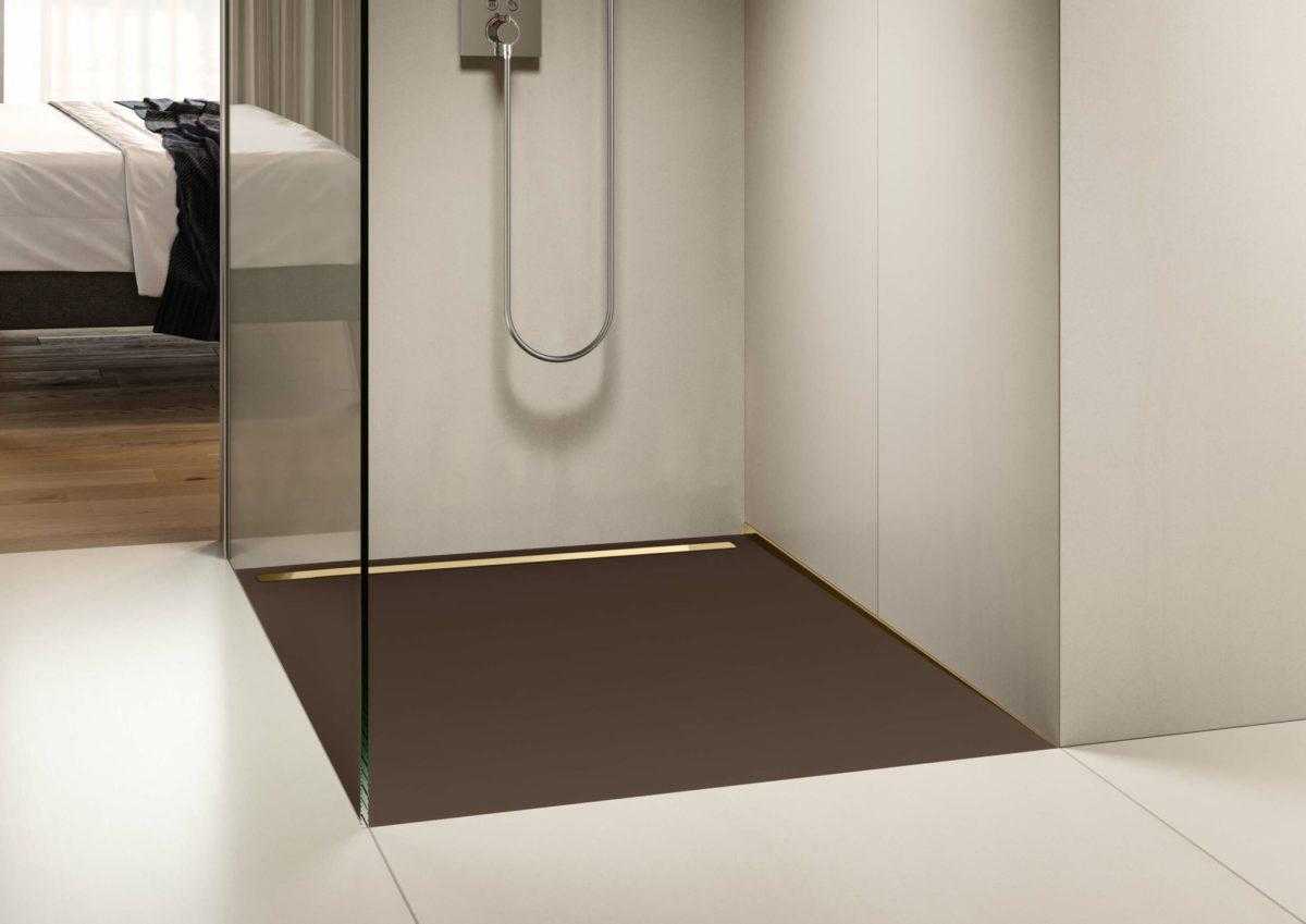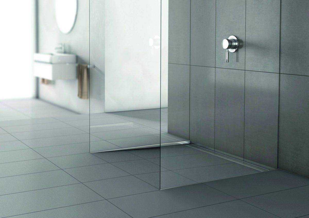 Если хочется сделать сантехнику незаметной, словно растворяющейся в воздухе, стоит обратить внимание на душевые уголки без поддона со стеклянной дверью или стенами. Они могут иметь разные размеры и конфигурацию, идеально вписываясь в пространство