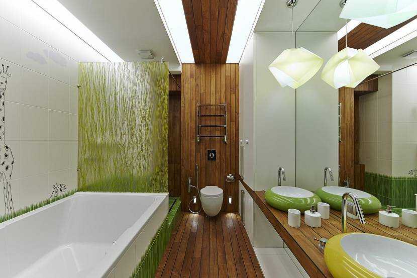 Дизайн узкой ванной в зеленых тонахИсточник prointerno.io