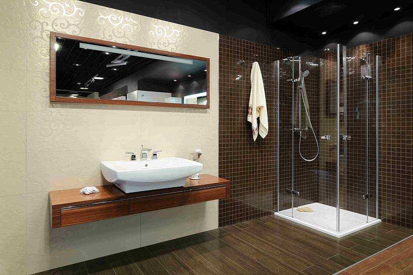 Душевая комната нуждается в материалах, которые гигиеничны, практичны, устойчивы к действию влаги, не восприимчивы к температурным перепадам. На выбор также влияет их ценовая доступность.