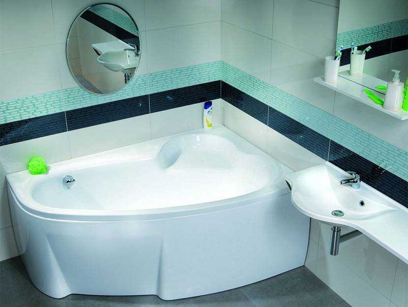 Асимметричные угловые модели позволяют даже при небольшой площади помещения пользоваться длинной ванной. Например, при длине ванны 150 см, длина чаши может достигать 180 см. Если пространство не позволяет использовать такой вариант, можно приобрести асимметричную модель меньших размеров с чашей, зауженной с одной стороны.